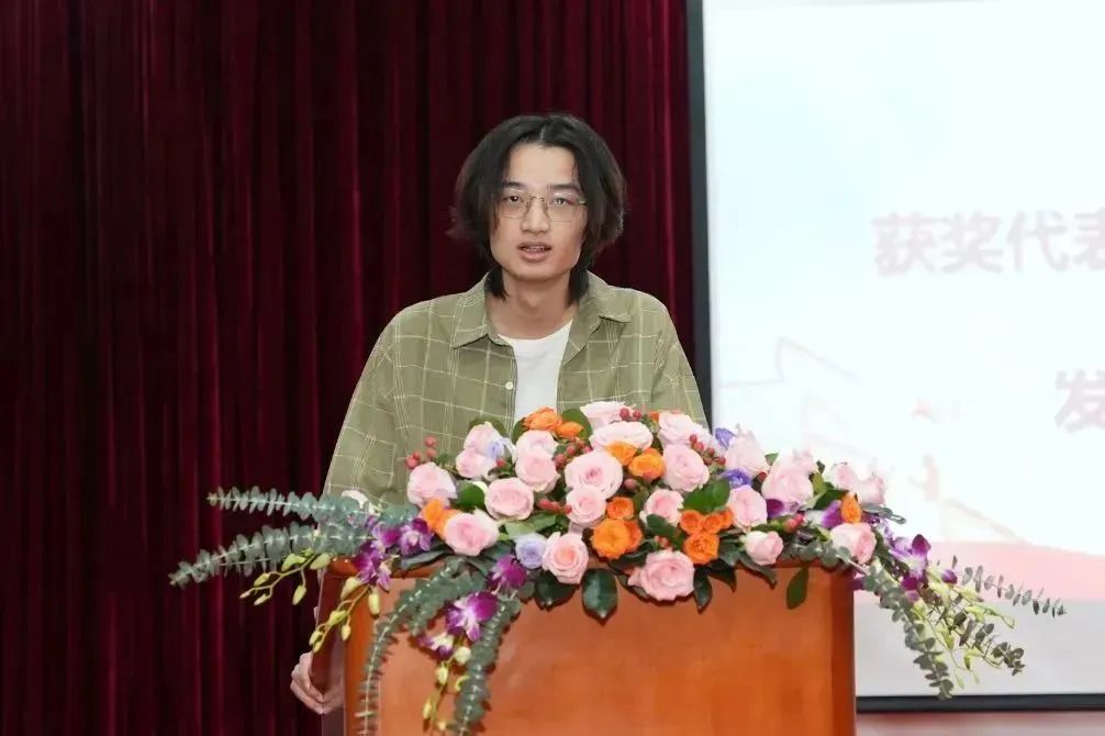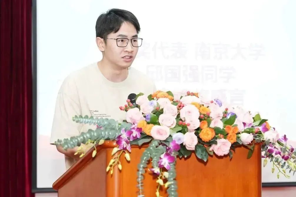 王琤书记为小说奖领奖人邱国强颁奖。来自南京大学的邱国强同学作为获奖代表发表了感言。