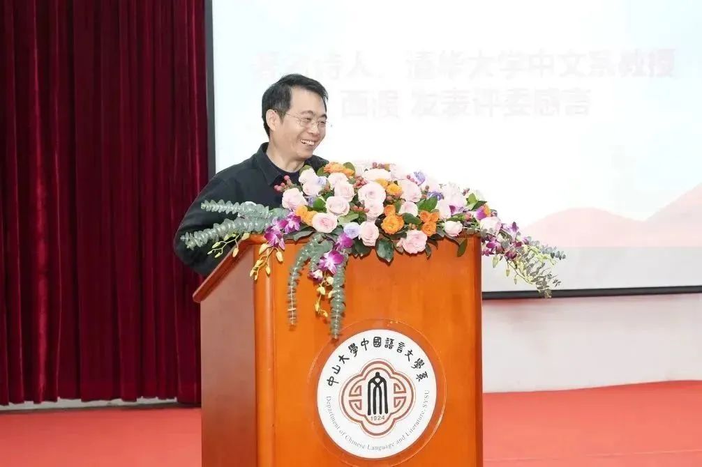 朗诵结束后,著名诗人,清华大学中文系教授西渡老师亦以参与评奖的切身体会称赞了“逸仙青年文学奖”面向全国大学生征集所体现的开放包容胸怀。诗歌是和幸福有关的文体,青年诗人们训练写诗的能力也是提升生命质量的过程。西渡老师鼓励青年诗人写出诗歌的青春特质,找到属于自己的声音,承担起诗人体悟宇宙万物的使命。