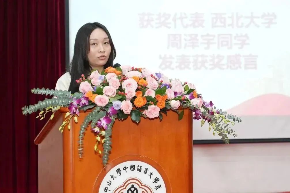 谢金华副书记、罗成副教授为非虚构奖领奖人周泽宇、杭志程颁奖,来自西北大学的周泽宇同学作为获奖代表发表了感言。